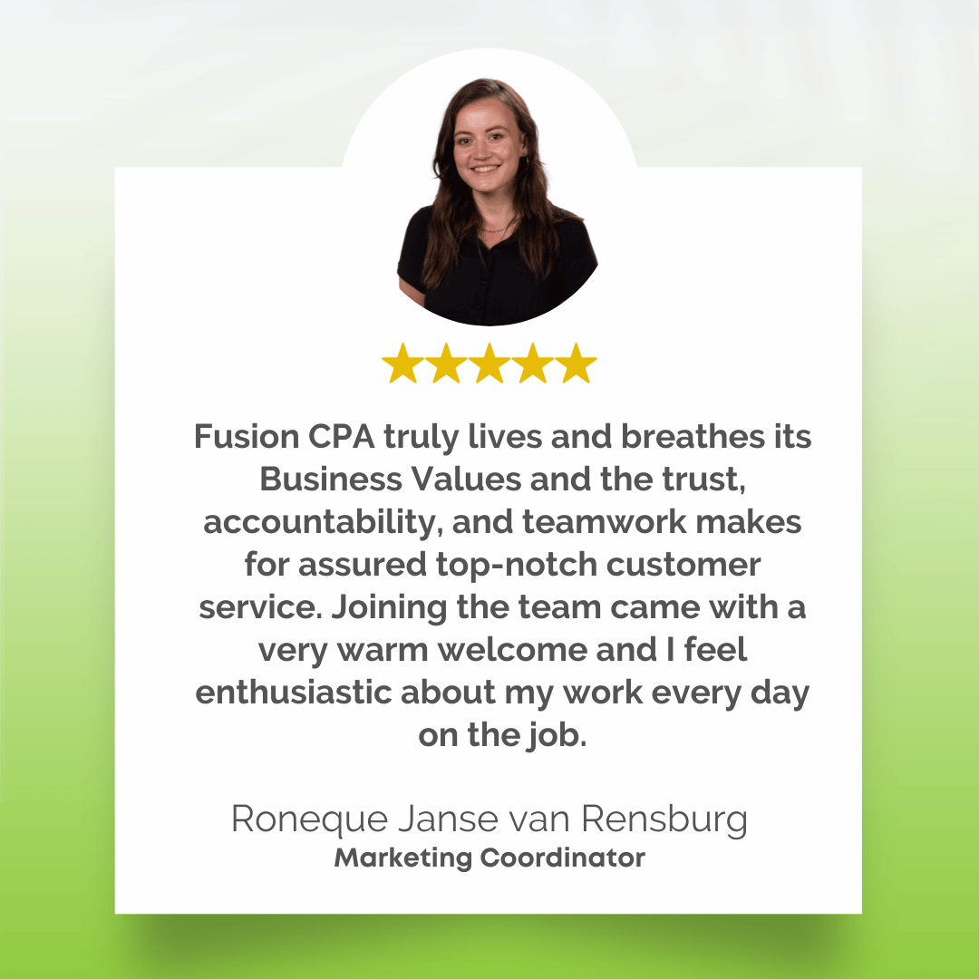 People who work at Fusion CPA are comfortable with accountability and measuring their outcomes.