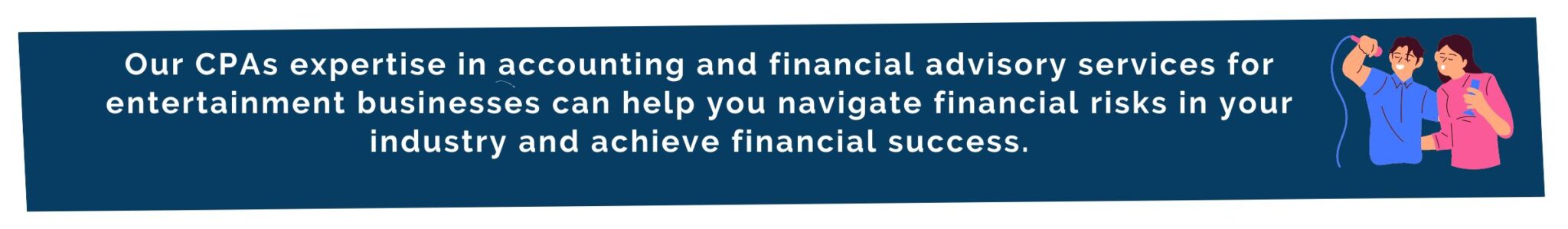 - Their in-depth understanding of accounting principles, tax regulations, and financial reporting ensures that entertainment businesses remain compliant with industry standards and legal requirements.