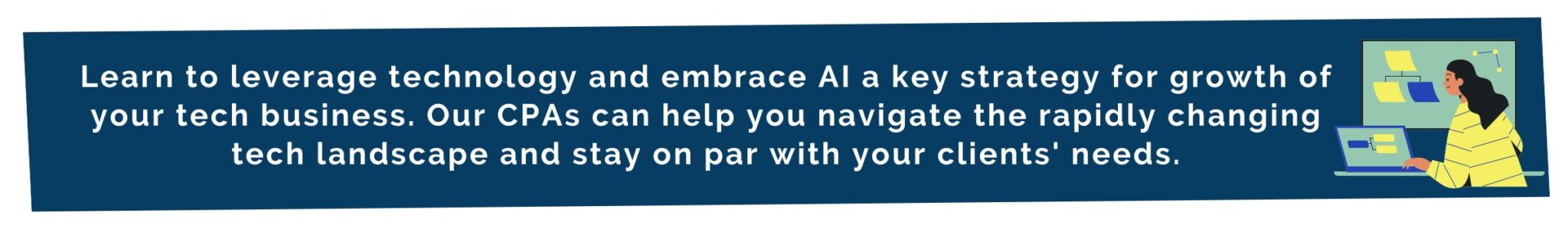 Our team of highly skilled CPAs can help your tech business develop a winning growth strategy. Our services consider the power of AI in the tech industry and can help empower your business to thrive in today’s competitive landscape.