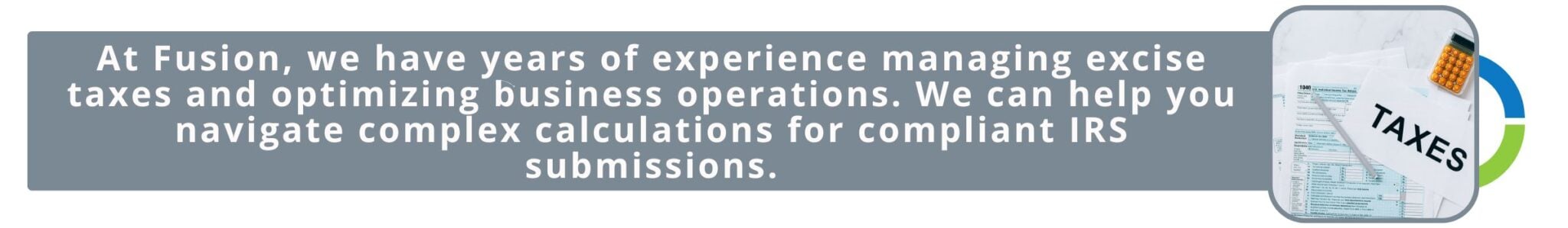 At Fusion, we have years of experience managing excise taxes and optimizing business operations. We also take care of the administrative stuff like ensuring compliant records. It’s a win-win! Contact us today.