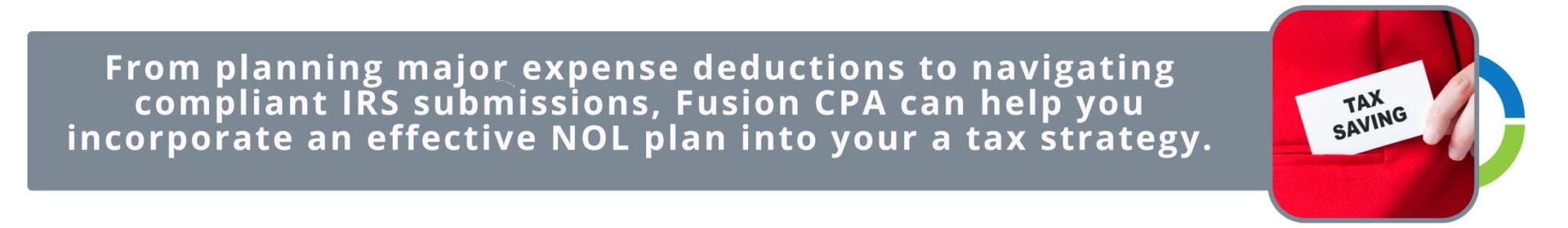 At Fusion CPA, we have helped businesses across various states and industries develop a tax strategy that considers NOL as part of their long-term financial stability plan. From navigating expense tracking accuracy to ensuring accurate and timely submissions to the IRS, our CPAs can help you.