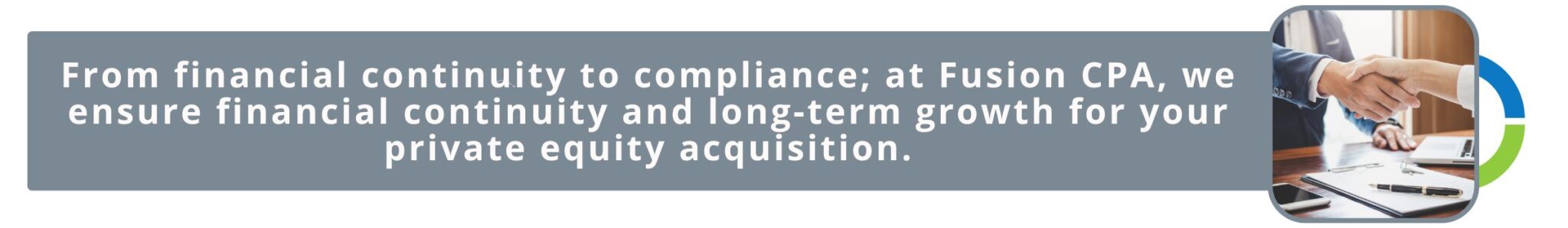 At Fusion CPA, we have helped many businesses iron out the challenges when navigating a PE acquisition. From conducting due diligence to mapping out a financial strategy, we delve into some of the key considerations to ensure financial continuity and compliance.