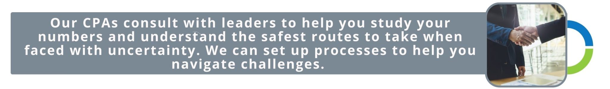 Adaptive leadership is about dealing with problems as they come, foreseeing them, and getting ready. A CPA acting in the role of business advisor can help you become proactive in handling risks. To make it through the ups and downs, businesses need to be able to adapt fast, grab opportunities, and navigate the twists and turns of a constantly changing economy.