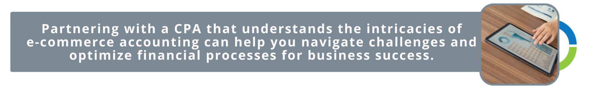 With customer data flowing through e-commerce platforms, data security and compliance becomes crucial. Ensuring that your financial systems are secure and compliant is vital when it comes to protecting your business and reputation. Consult with a CPA to discuss data security and reliable accounting software to meet the financial needs of your business.