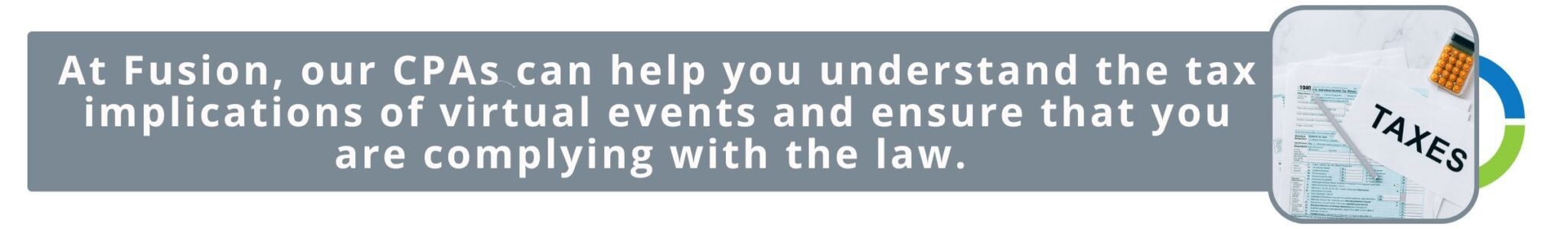 Investing in expert support not only provides peace of mind but also enables businesses to thrive in the digital era while staying tax-compliant. At Fusion, our CPAs can help you understand the tax implications of virtual events and ensure that you are complying with the law. We can also develop tax strategies that will help you save money on taxes related to virtual events